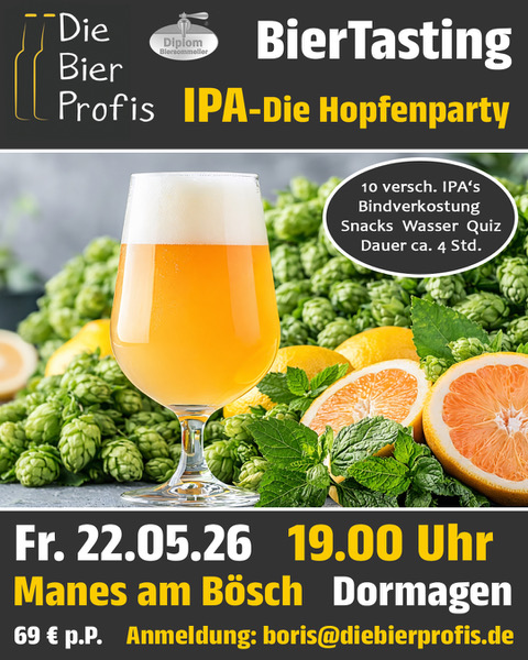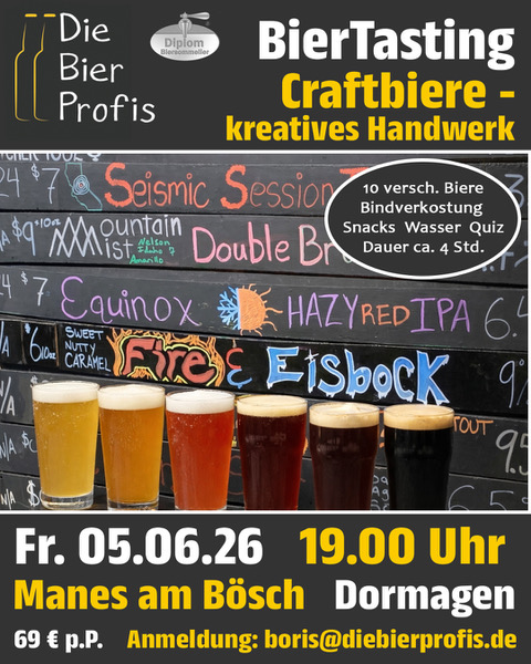 Für Anfragen bitte eine Email an info@diebierprofis.de mit Angabe von möglichst mehreren Terminwünschen.