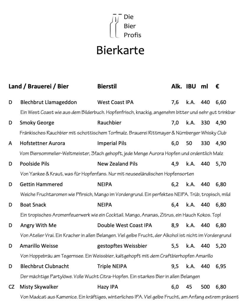 Aktuelle Bierkarte bei